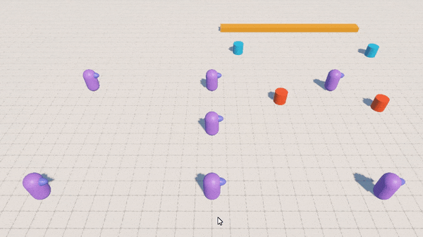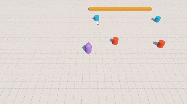 Для этого я собрал простейший сетап, который видно на гифке ниже. Впоследствии, при добавлении/изменении механик его можно было легко запустить и проверить, что ничего не сломалось.