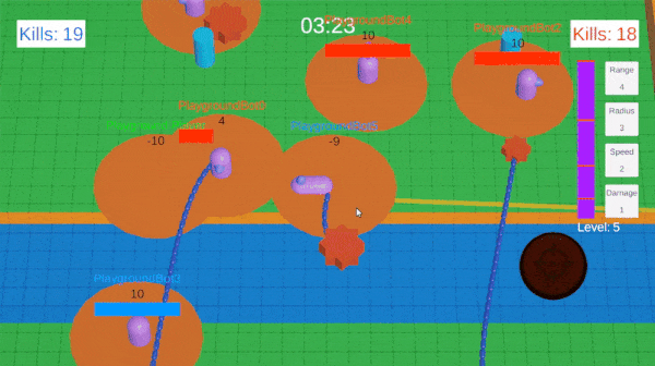 В дополнение ко всему, что было написано выше, я хочу добавить, что боты стали более разумными. По гифкам вы могли заметить, что теперь они кидают свои гарпуны не в случайную точку на карте, а прямо стараются попасть в противника!