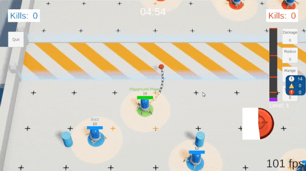 Герой игрока возрождается после смерти через несколько секунд. Стандартная механика для такого типа игр. И это как-то скучно, поэтому я решил внести чуть больше разнообразия в эту механику. К примеру, во многих шутерах после смерти демонстрируется момент твоего убийства, или даётся возможность переключаться между камерами игроков, а иногда и просто выдаётся свободная камера. В общем, у игрока есть возможность (но не необходимость, и это важно!) чем-то заниматься. Так как у нас уже появилась сай-фай арена, роботы, то я подумал - а почему бы не сделать что-то типа космической высадки (как в Helldivers или в SuperVive), но после каждой смерти? Это даёт игроку возможность управлять местом высадки (в разумных пределах), и некоторое время наблюдать диспозицию всех противников с высоты птичьего полёта.