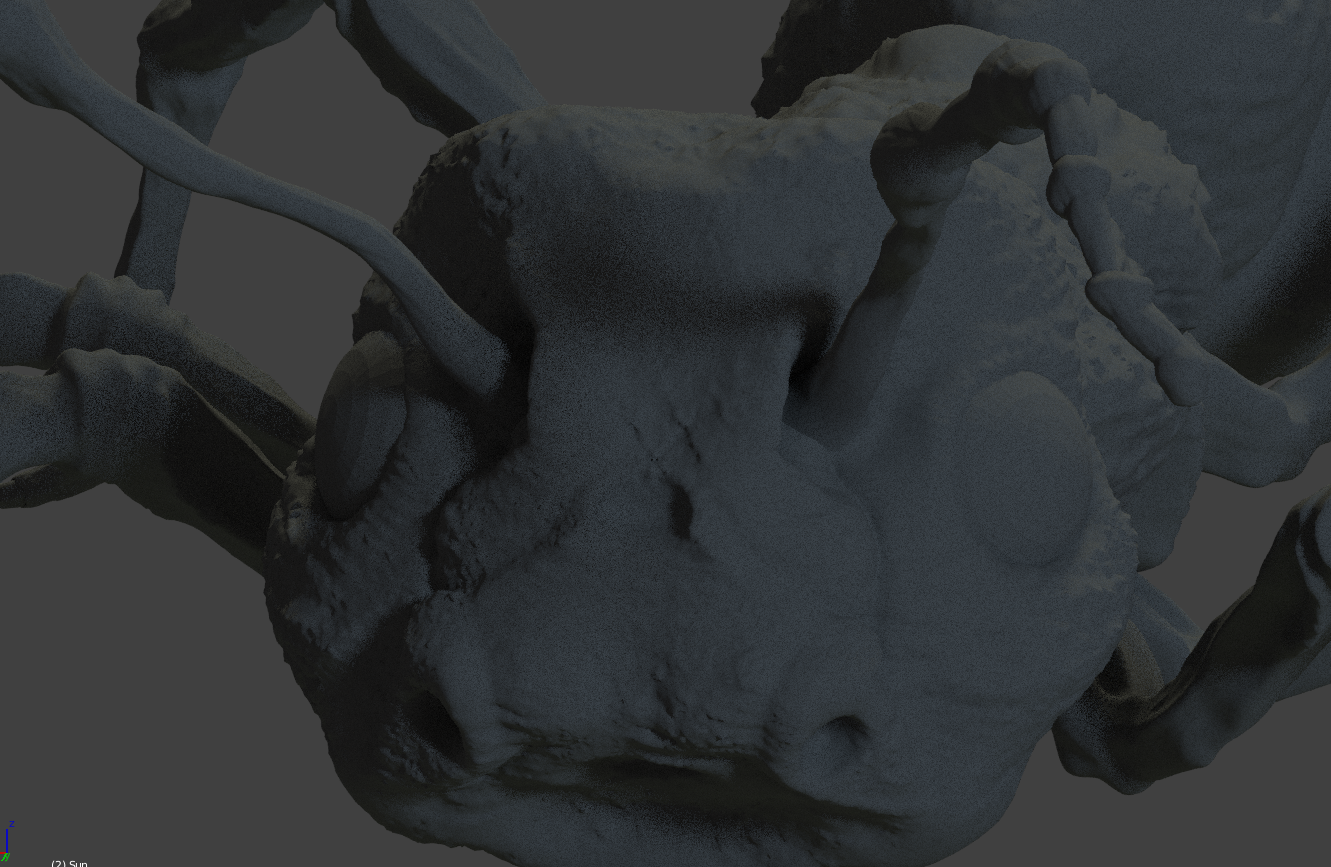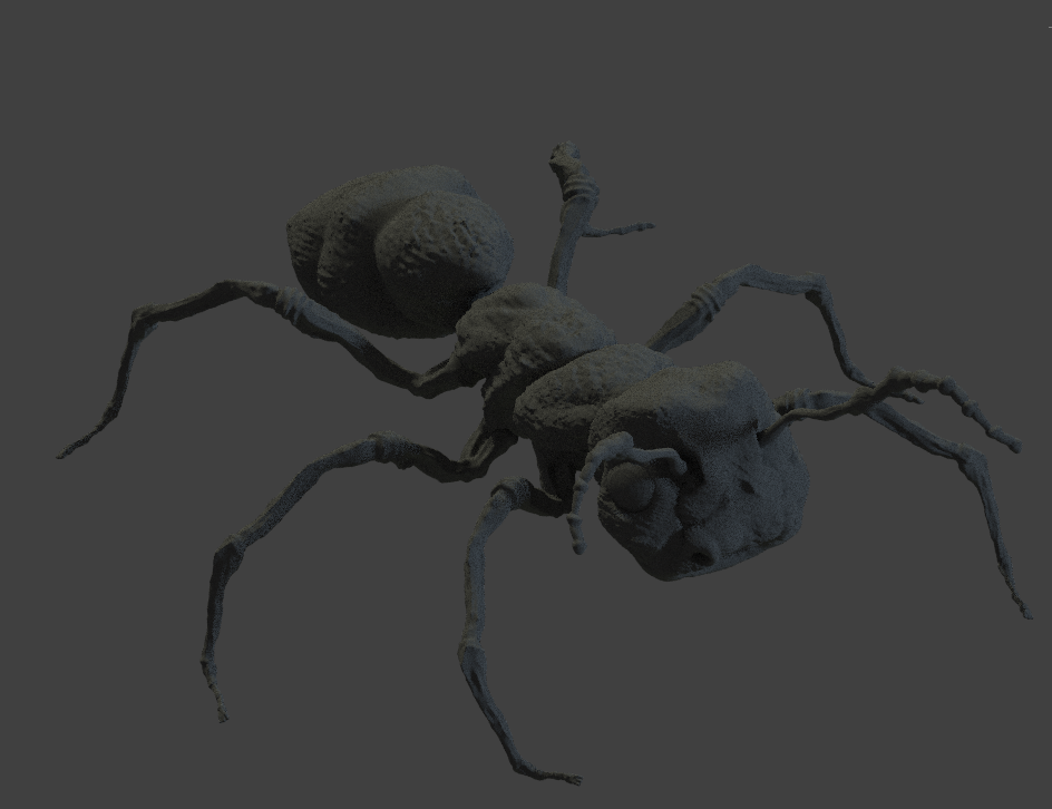 Сегодня весь день учил скульпт, получился муравей в 1.500.000 полигонов. Дальше буду делать low-poly копию и развертку с помощью текстурных карт hi-poly модели.