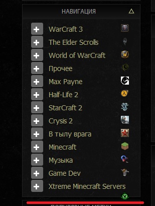 - будет блок "Навигация" на глагне, который сгенерируется из списка "топ проектов". (суперпроектов). Например Warcraft, Starcraft и т.п.
