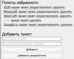 Сюда вы можете добавить любые закладки. Данная система призвана предотвратить захламление закладок вашего браузера. Допускаются любые ссылки: на ресурсы, проекты, профили пользователей, добавление ресурсов, а также ссылки на с любые сторонние сайтов: кроме вас, ваши закладки не видит никто.