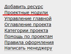 Чтобы активировать раздел, заходим в «Проектные модули»