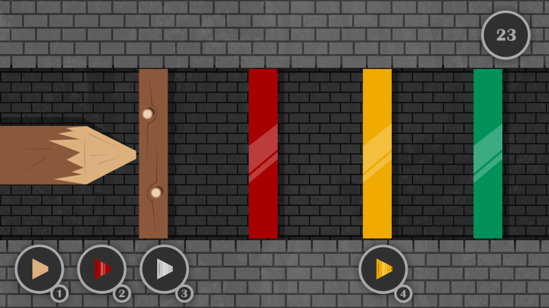 Вы должны разрушить как можно больше препятствий. В игре 6 видов материала и 6 видов препятствий. Для того, чтобы разрушить препятствие, Вы должны выбрать соответствующий для него материал. Все это проходит в непрерывном движении, в чем и заключается трудность игры. Предполагается, что будет несколько тем (например, тема "балка и стены"; игрок - деревянная балка, материал - наконечник балки, а препятствия - стены).