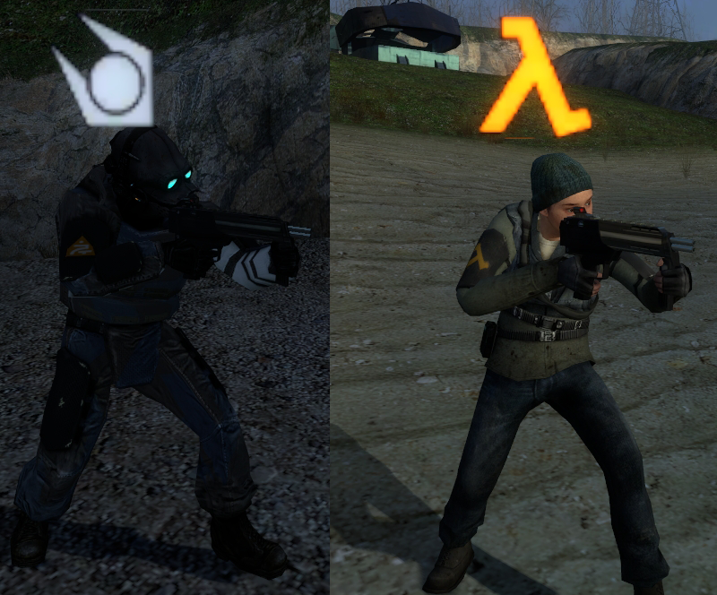 - Доступ к обоим типам оружия (как классические пушки HL2, так и новые из LS)
