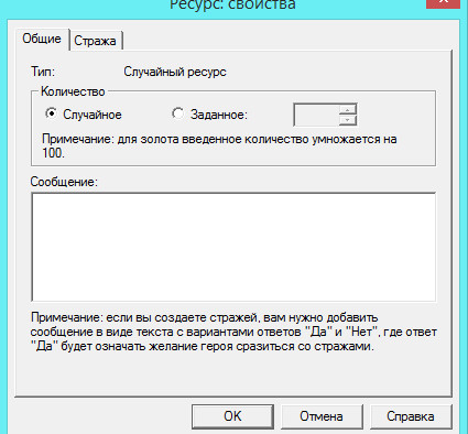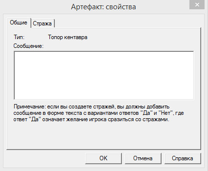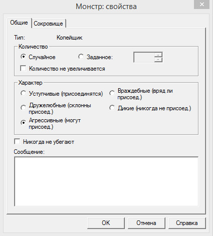 В этой вкладке мы можем задать конкретное количество монстров данного типа.Так же можем установить их характер и небольшое сообщение, которое будет появляться в случае нападения на монстра