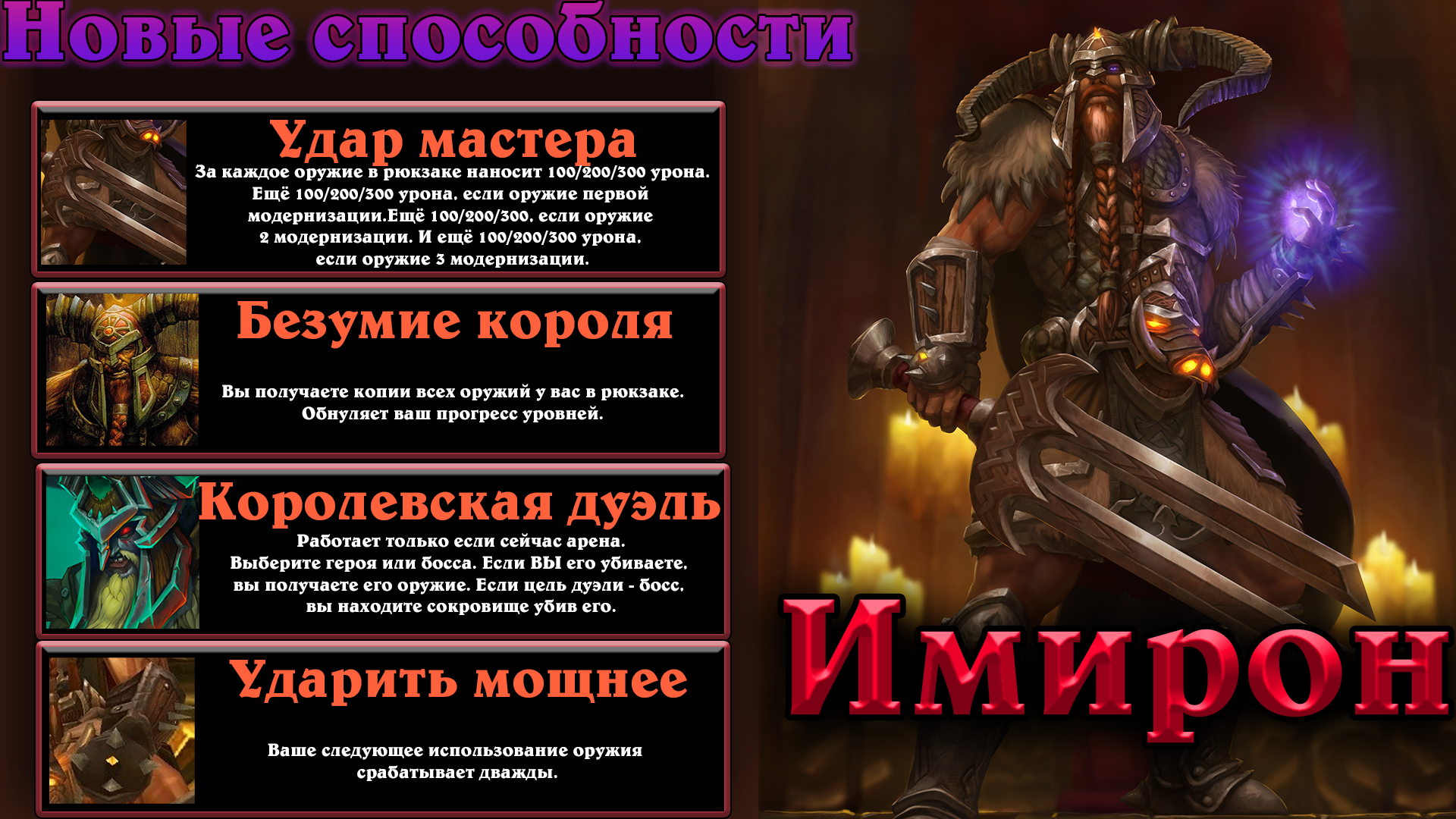 Уже в новом обновлении 4.0 в Hero of Warcraft появятся персональные способности! Которые можно будет выбрать герою в новой книге под названием [Книга персонажа]. Пока-что, каждый герой получил по 4 новых способности. Анонсы новых способностей героев были опубликованы в нашем дискорде. Здесь покажу лишь несколько случайных: