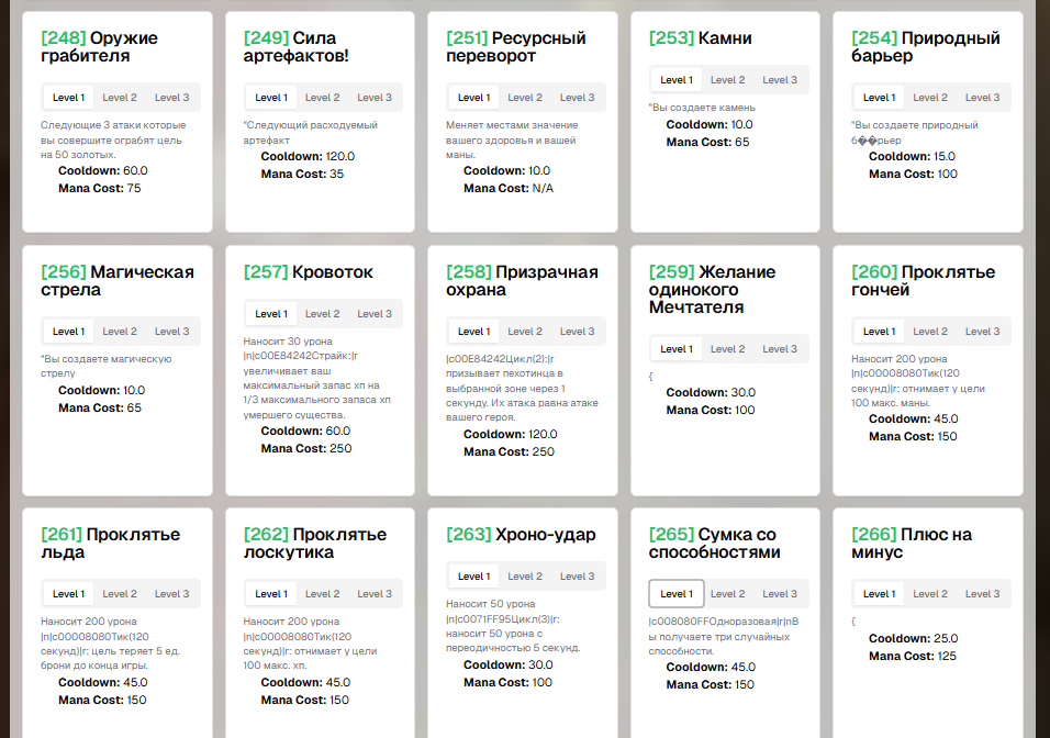 Способности не работали или приводили к ошибке, поэтому заменены на старые.