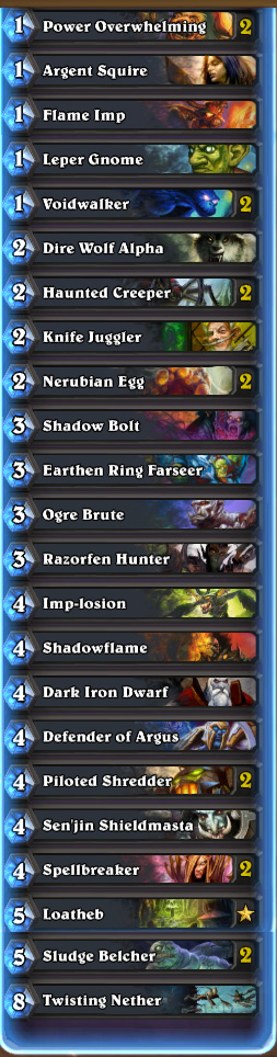 implosion скоро в стандарт формате пропадет, так что его можно заменить на shadow bolt и/или drain life, но имплоужн круче, т.к. создает импов и комбо с джагглером