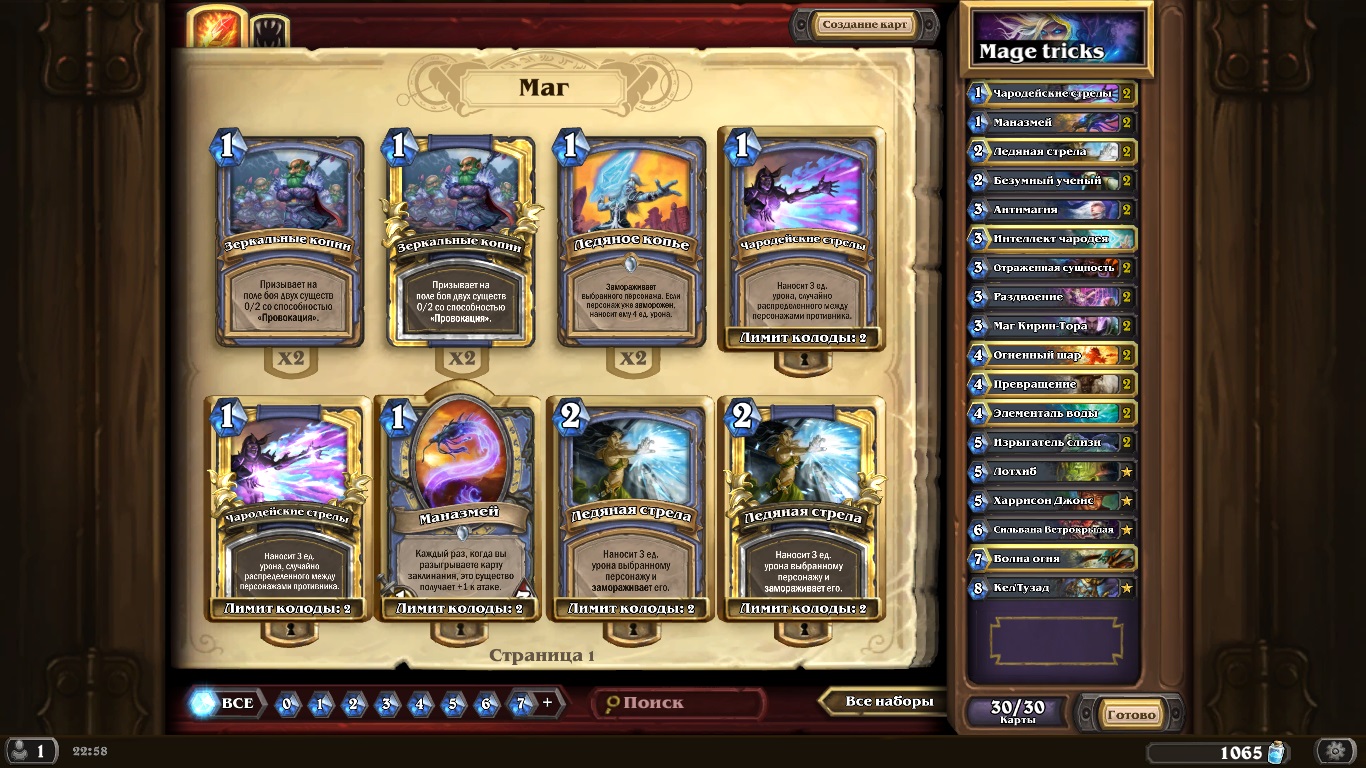 - 2-е Волна огня и Интеллект чародея - возможно добавить, если есть необходимость в доборе карт либо в очистке стола.