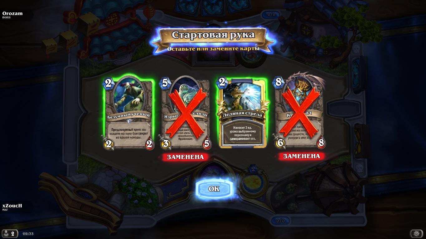 - Чародейские стрелы - отличный дешевый ремувал, а кроме этого позволяет прокачать вашего Маназмея. Не держите в руке, если у Вас нет Маназмея и если Вы играете против контроль колод. В середине игры тоже полезен, очень часто помогает чистить стол. Всегда старайтесь его получить против аггро-колод (всегда против - охотников и чернокнижников).