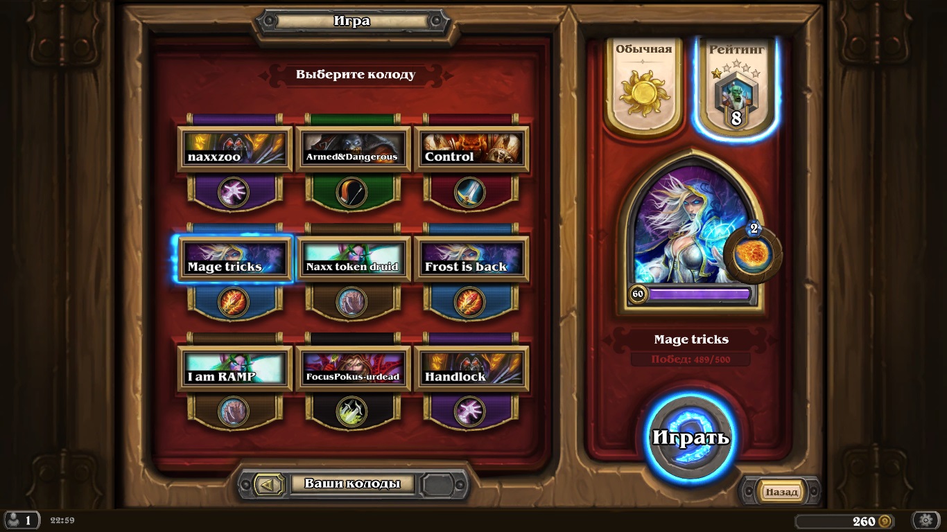 Итак, на настоящий момент у деки винрейт равен 56%, что позволило мне не напрягаясь подняться с 18 ранга до 8-го.