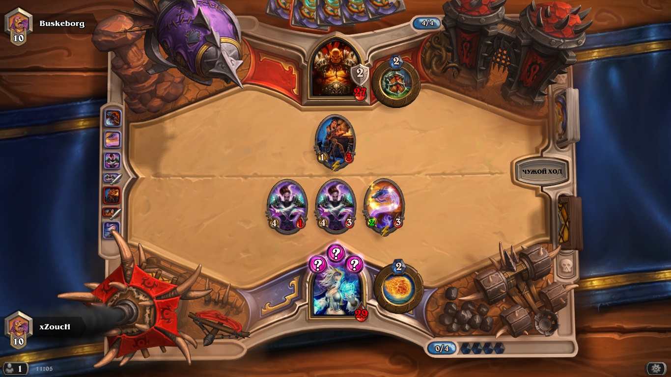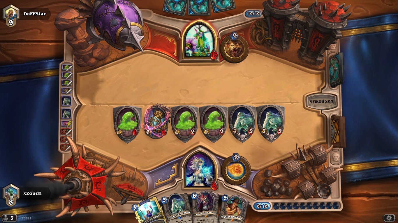 Друид - благополучный матч-ап для нас. Здесь как раз наши секреты имеют очень большую силу. Очень часто друиды просто сдавались к середине игры, когда использовали "Озарение" и призывали сильное существо, а у нас висел секрет "Отраженная сущность". Если Вы сможете применить секрет "Раздвоение" на вашего Лотхиба - то, считайте, что Вы победили. Никакой Друид не переживет выхода 3 Лотхибов подряд.