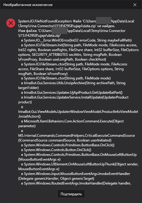 - Вставить коннектор в папку с кириллицей -> Запустить коннектор -> Зайти в меню загрузки модуля -> Установить модуль -> Обновить модуль