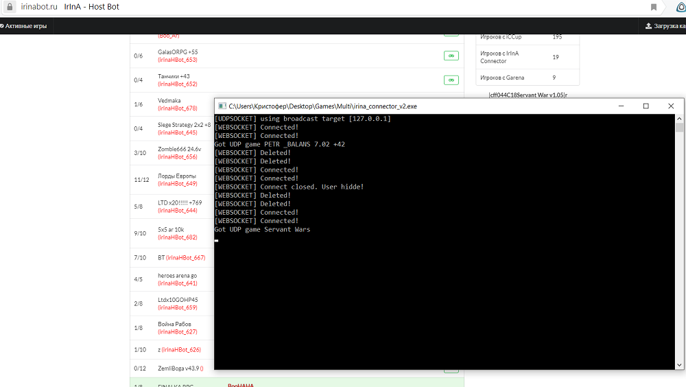 Если вам надо чтобы коннектор запускался и закрывался в фоне с Warcraft III - распакуйте из архива sl.exe и sl_hidden.mix в папку с warcraft.- Если вы предпочитаете запускать коннектор вручную (или хотите видеть его логи), то распакуйте в удобное место irina_connector.exe или IrinaConnectorGui.exe и запустите его.