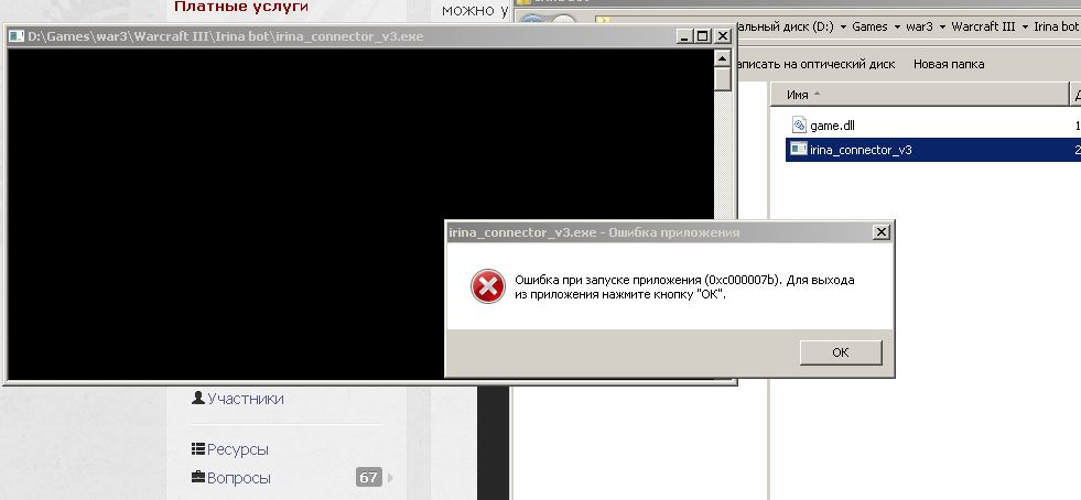Здравствуйте, у меня проблема с ириной. При запуске выдаёт ошибку 0xc0000007b, я пробовал все методы по решению проблемы в интернете, однако мне ничего не помогло. Что делать?
