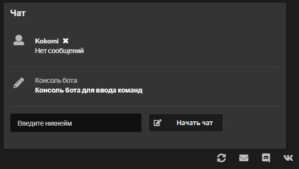Чат располагается на месте окна отправки сообщений (иконка конверта в углу сайта)