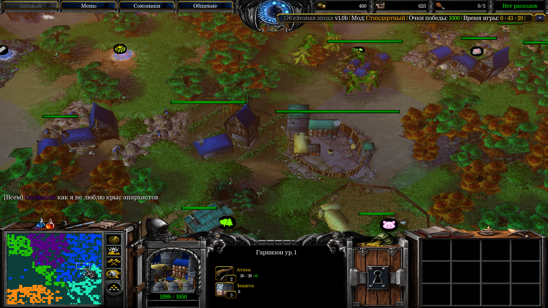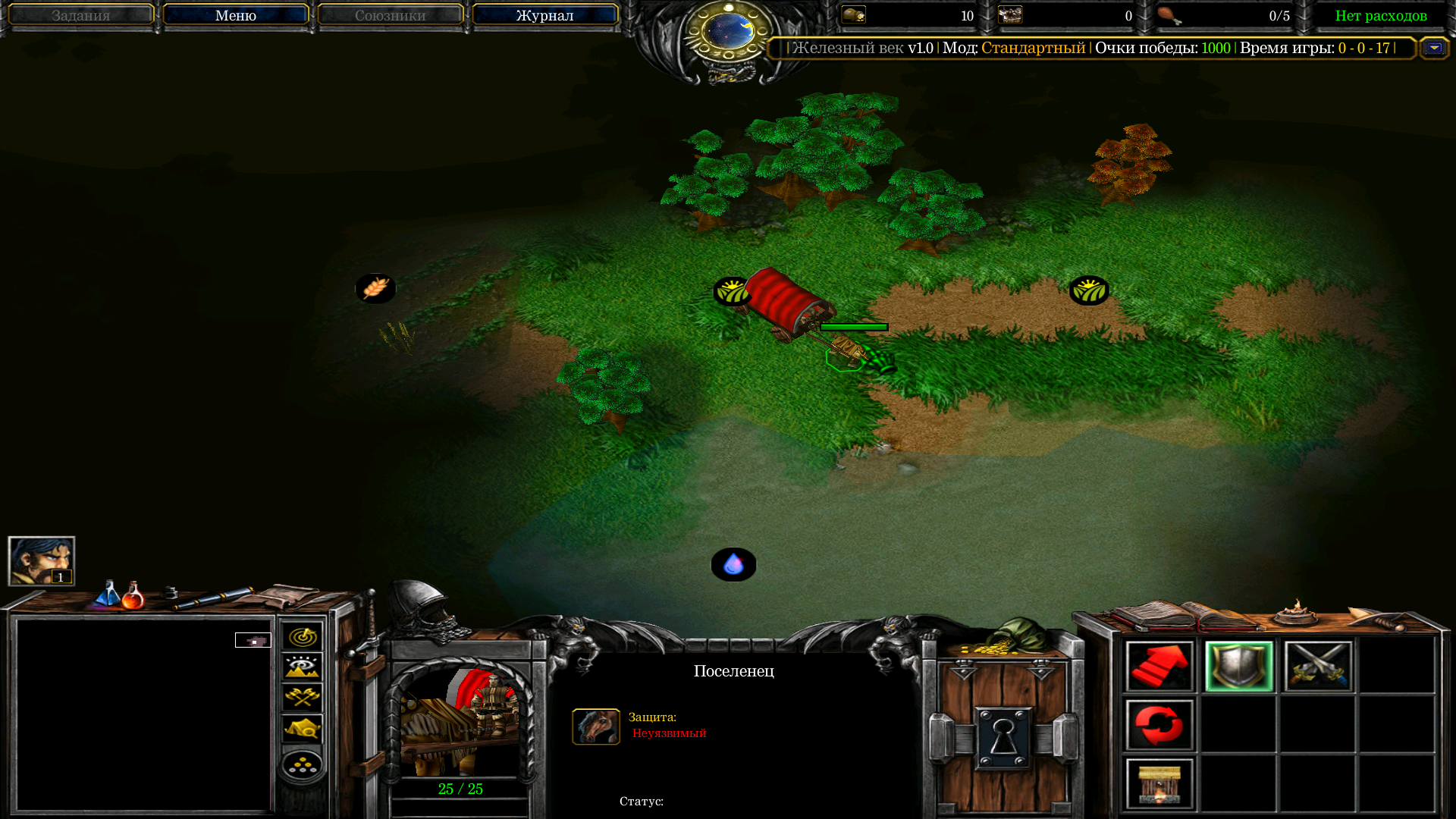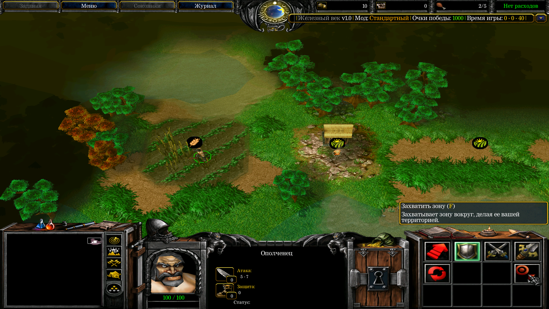 После постройки главного здания, каждому игроку будет выдан начальный тип войск - ополченец, с помощью которого необходимо начать захват ближайших территорий.