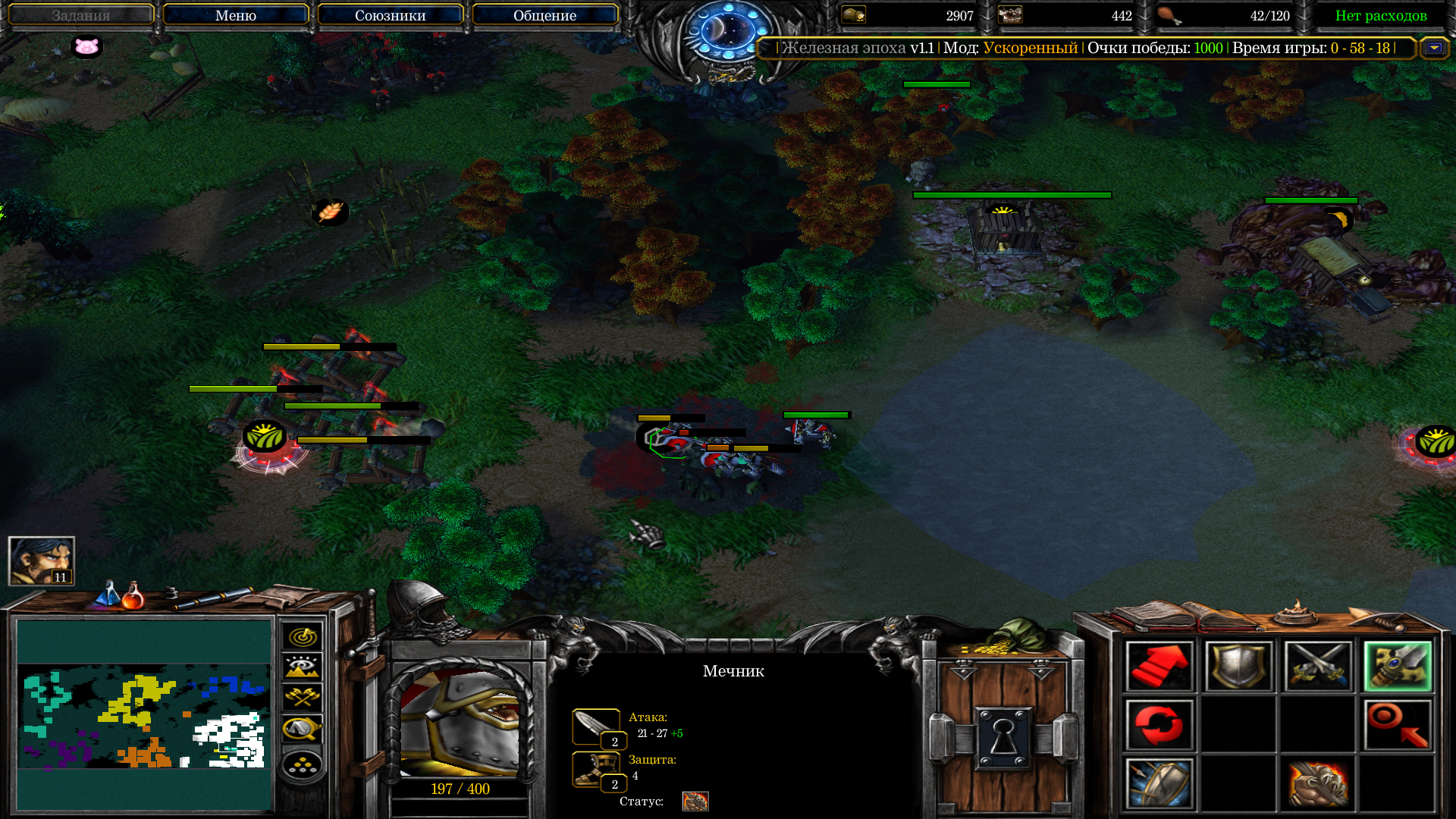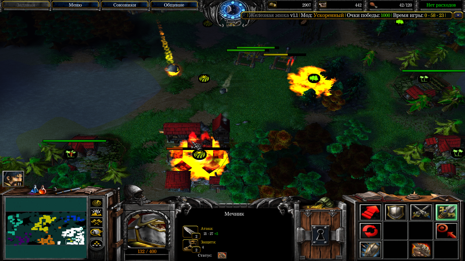 - Бонус технократии к радиусу атаки переделан в бонусные 15% здоровья и 1 ед. защиты для зданий.