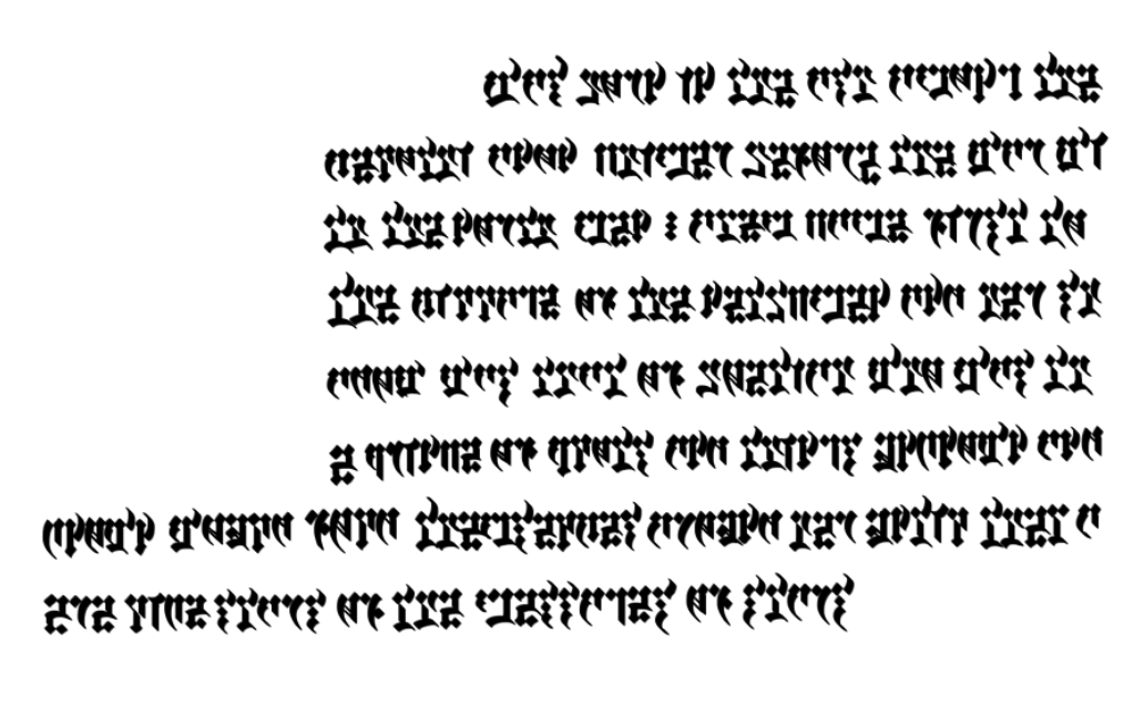 Надысь на Нексусе увидел ретекстур пергаментов для Морровинда, в котором использовался скан какой-то средневековой рукописи. Подумал, что такое не дело, и решил придумать готический даэдрический шрифт, чтобы можно было рукопись сделать аутентичнее. Вот что получается: