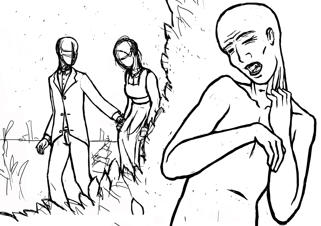 Могу историю рассказать. Я был на выступлении, где девшука читала стихи под музыку. Екатерина Али. Там у неё были строки, что-то вроде: «Из кустов доносится пронзительное пение...», дальше там типа: я подбираю подол платья, ты берёшь меня за руку — точно не помню. Мне они не понравились, но почему-то сразу возник вот такой вот образ. А потом на каркас этого образа наклались и всякие личные мои переживания и мысли.