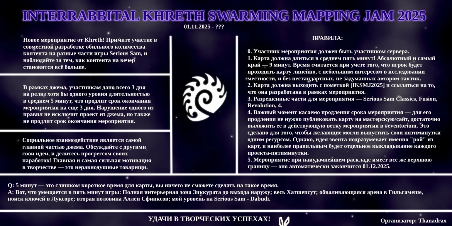 Началось новое мероприятие — IKSMJ2025. Участникам предстоит в течение чрезвычайно сжатых сроков (3 дня), с помощью социального взаимодействия и творческих способностей, выпустить хотя бы один небольшой проект длительностью в пять минут. Как только один такой проект будет завершен, срок окончания мероприятия сдвинется на еще три дня для всех. Таким образом, мероприятие можно растянуть вплоть до тридцати дней.