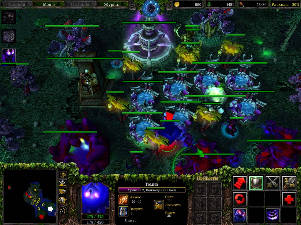 Хотел бы ещё раз оговориться, что то, что сделано, полностью подстроено под стандартный варкрафтовский баланс (ну, или хотя бы была сделана такая попытка). В этой карте, в этом проекте хотелось бы полностью его изменить, оставляя основную задумку в силе.