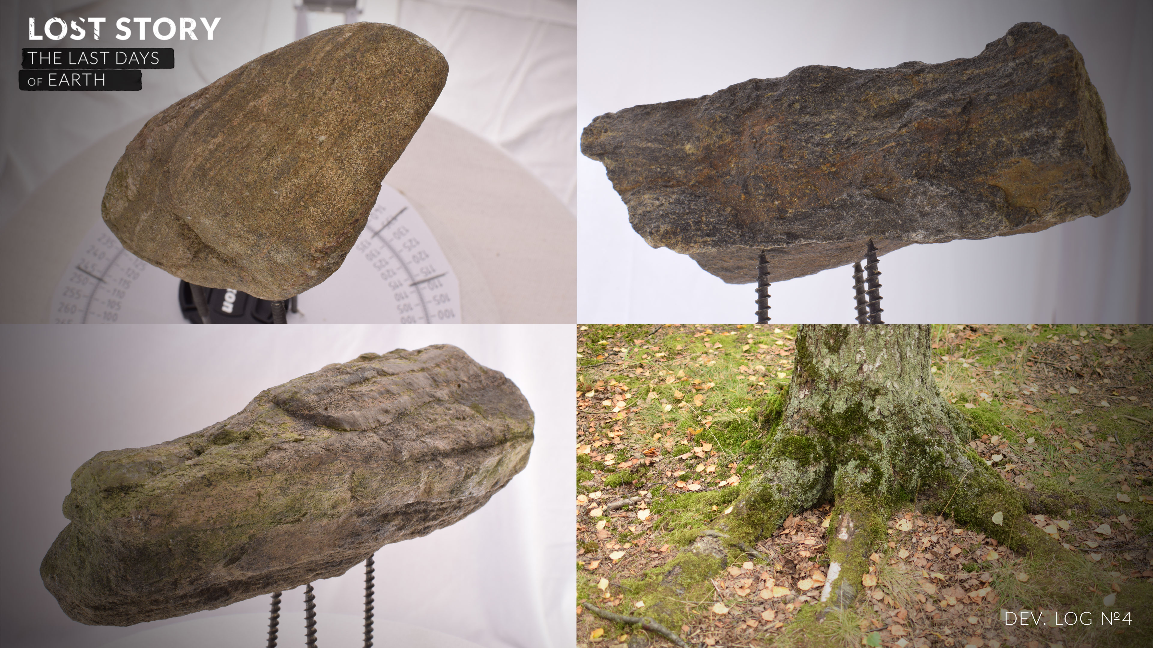 О съёмках в «студии» мы задумались, когда стало понятно, что камни, снятые на натуре, не слишком удобно использовать для создания уровней. Дело в том, что большинство валунов глубоко сидят в земле и в финальной модели одна из шести сторон у них будет отсутствовать полностью. Из-за этого с такими валунами сложно работать при создании локации. «Дыра» в основании такого камня ограничивает углы поворота, что в свою очередь не даёт использовать копии моделей близко друг к другу - очень заметно что это одна и та же модель. В силу всех этих причин было решено собрать несколько небольших камней с интересной фактурой и отснять их в «студии».