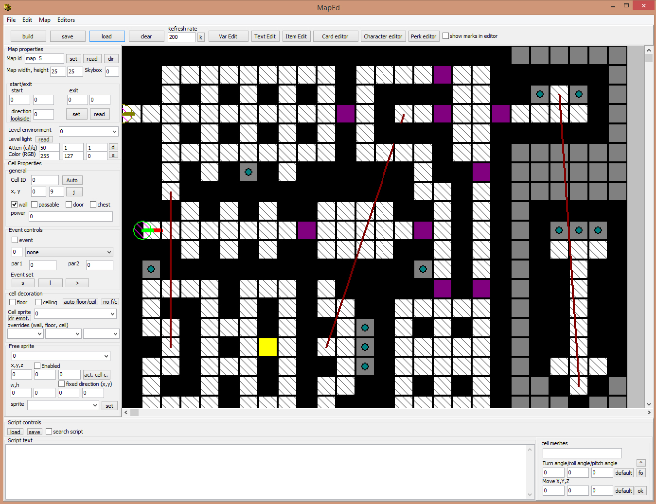 Перепилена раскладка редактора карт. Панель скриптов уехала вниз, к ней подселилось управление мешами (используется все равно крайне редко). Все панели, оставшиеся слева, теперь сворачиваются и разворачиваются по двойному клику.