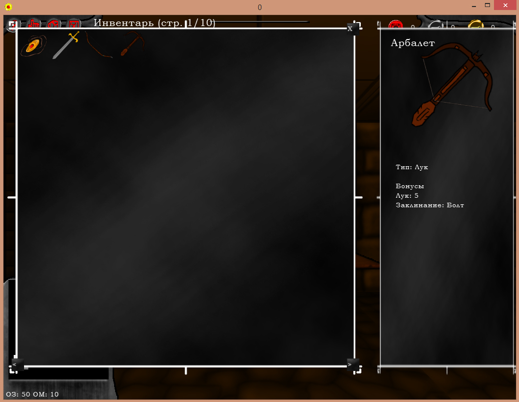 • В инвентаре теперь выводится описание предметов (бонусов, которые они дают): Теперь хоть можно увидеть, откуда какие плюхи к параметрам падают, и насколько полезен тот или иной предмет