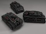 Первый альтернативный вариант в виде машины-пилы быстрее, скорострельнее, но слабее по урону и броне. К слову, это дань уважения разработчикам Dune. Второй вариант - огнемётный танк. Третий - противопехотный танк с 9-ю пулемётами.