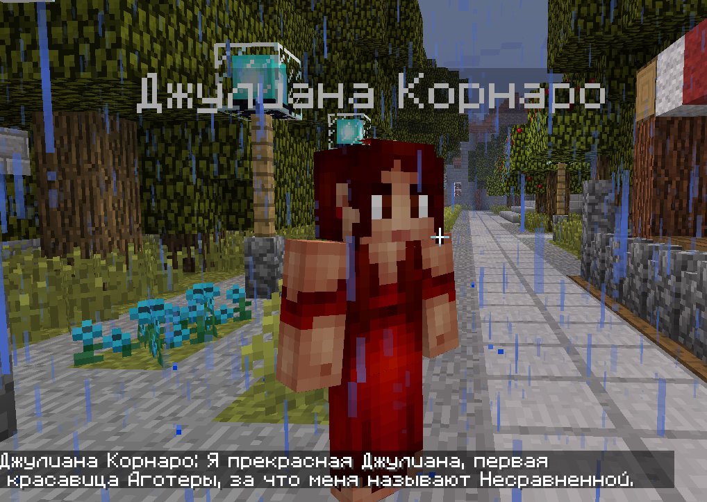 Это Джулиана Корнаро, она натурщица для художника Симона Ботарчи, одна из самых красивых девушек в столице, характер немного надменный, но в целом она добродушная. В игре она выходит из своего дома, прогуливается по центру и идет к Симону домой, где он "творит" свои картины, после возвращается домой.