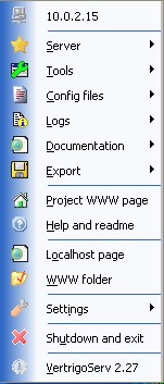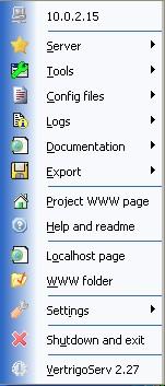 VertigoServ - это высокопрофессиональный и простой в установке набор, состоящий из Apache (HTTP веб-сервер), PHP (скриптовый язык программирования), MySQL (многопоточная, многопользовательская СУБД), SQLite (встраиваемый движок баз данных), SQLiteManager (многоязычная веб-утилита для управления БД SQLite), PhpMyAdmin (утилита, написанная на PHP для администрирования БД MySQL) и Zend Optimizer (который увеличивает производительность запущенных процессов на 40%) для платформы Windows. C помощью удобного инсталлятора "всё-в-одном" все компоненты устанавливаются в одну директорию и работают сразу же после того как установка закончена. Деинсталлятор позволяет удобно удалять VertigoServ с жесткого диска. Всё это спроектировано так, чтобы занимать как можно меньше места и быть максимально гибким, поэтому отлично подходит для распространения по сети Интернет. VertigoServ хорош как для начинающих так и для более опытных пользователей.