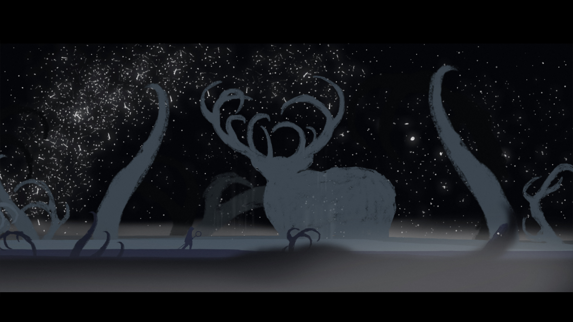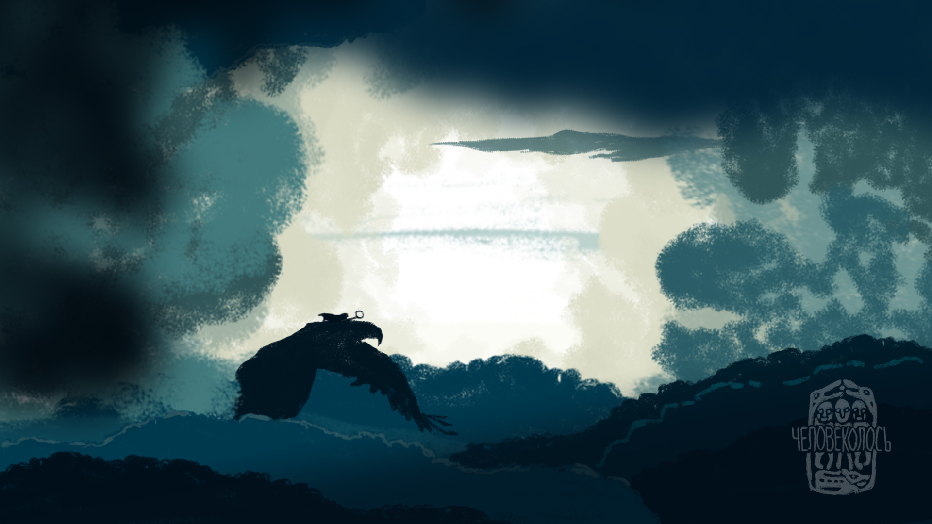 Итак, мы продолжаем разработку. Мы закончили небольшой флешбэк-спинофф с Перой-Богатырем в главной роли. Там вы можете отдохнуть от шаманских хитростей и поохотится на Лося, все для того, чтобы обрести огонь у Солнца. Пера — что-то вроде Коми Прометея, он добыл кусок солнца и познакомился с Зарань, богиней зари.