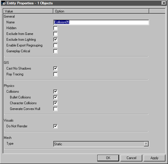 Поскольку осколок имеет много граней, то он не может быть динамическим объектом, по этому нам придется использовать, для просчета его физики примитивную болванку.