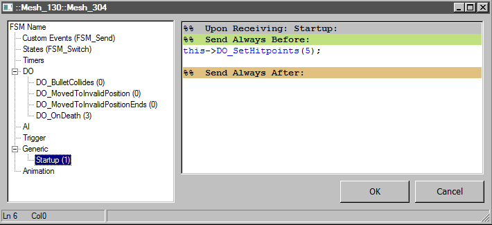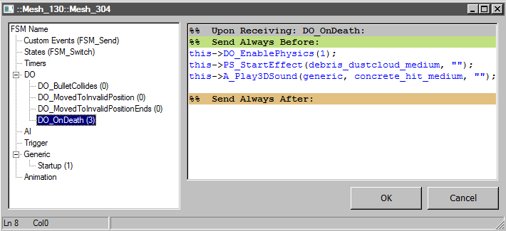 В заключении выберите осколок и откройте окно Edit FSM, нажав клавишу B. И пропишите следующие строчки