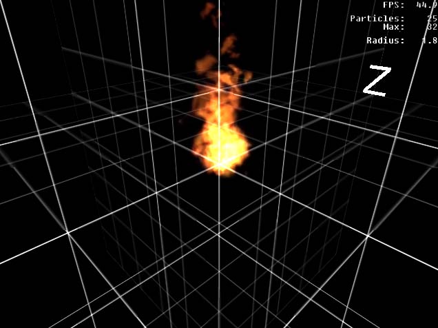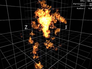 Фактически представленный файл пример рассчитан на комбинацию из двух эффектов огня. Первый эмиттер был скопирован с помощью кнопки Clone и немного отредактирован. Первый эмиттер извергает маленькие языки пламени с небольшим временем жизни, а второй напротив – одно большое пламя с большой продолжительностью жизни. Это предотвратит ситуацию когда маленькие языки пламени поднимаются слишком высоко, а она появляется в том случае если вы пытаетесь заставить эмитироваться все частицы огня из одного эмиттера с малым разбросом размера.