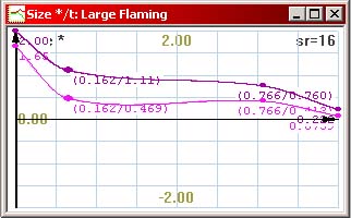 Попробуйте просмотреть полученный эффект, и Вы увидите огненный столб поднимающийся вверх. Выглядит лучше, но все, же не так как надо. Пора произвести отдельную настройку частиц, до того как они будут эмитированы. Нажмите на кнопку Size Graph, и отредактируйте его как указанно на расположенном ниже рисунке.