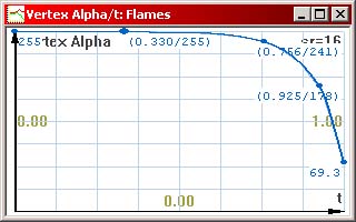 -Дым выцветает практически полностью. Наклоните вниз кривую графика Vertex Alpha Graph. Ввиду того что изображение дыма полностью непрозрачное, вы можете начать кривую прозрачности с изначально низкого значения и опустить его ещё ниже.
