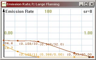 После того как пламя поднимается верх само по себе, направление эмиссии не требуетсяonся. Оставьте график Direction graph без изменений (за исключением понижения частоты выборки графика до 2 единиц).
