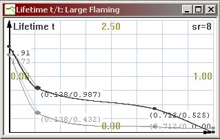 Измените, график Element Lifetime Graph таким образом, что бы верхняя линия находилась примерно на 1, а нижняя на значении 0.3.Снова измените частоту выборки графика на 2. В результате продолжительность существования эмитируемых частиц будет варьироваться между 0.3 и 1 секундами в течении 20 секундного цикла..
