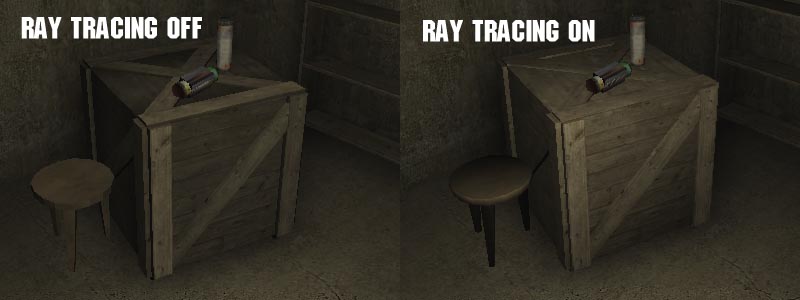 Ray Tracing – включает технологию трассировки лучей. Получается более мягкое освещение. Правда, мне не удалось установить принцип работы параметров Max Edge / Max Angle – разницы при 5/30 и 20/90 я не заметил. Но зато результат вообще от использования Ray Tracing налицо!