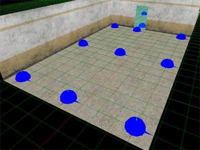 Также обратите внимание на то, что сеть AI, построенная в обучающей программе, редка для того, чтобы действительно работать безупречно. У Вас не должны быть очень большие расстояния между узлами AI-nodes. Даже тогда я не рекомендую заполнять пустую комнату большим количеством узлов AI-nodes, когда Вы намереваетесь добавить любую геометрию в комнаты, которые должны быть приняты в сеть AI-net, поскольку Вы будете добавлять больше узлов позже так или иначе, и этот путь не станет легко проходимым.