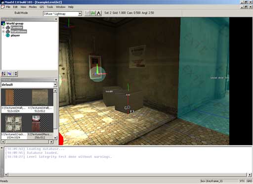 Перед началом работы над первым уровнем мы должны проверить работоспособность путём простого экспорта уровня-примера, поставляемого с инструментами. Запустите MaxEd2 и кликните File/Open и откройте "ExampleLevel.lv2" из папки "C:\MaxPayne2Dev\Levels\"