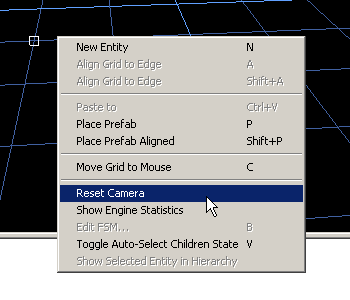 После ознакомления с азами перемещения давайте попробуем построить нашу первую комнату. Сначала давайте установим камеру на её изначальную позицию, переключившись в режим F12 и нажав СКМ, вызовите командное меню. Выберите Reset Camera.