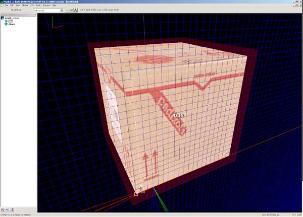 Откройте ещё одну копию MaxED2 и запустите новый уровень. Кликните Tools -> Document preferences и посмотрите на "Grid Scale steps". Добавьте значение '0.05' между 0.03125 и 0.0625. Затем скопируйте коробку на этот уровень и измените масштаб сетки на 0.05. Выровняйте сетку с коробкой и создайте меш, который будет меньше, на 5 см в каждом измерении, чем первоначальная коробка. Используйте тот же самый материал, как и в основной коробке.