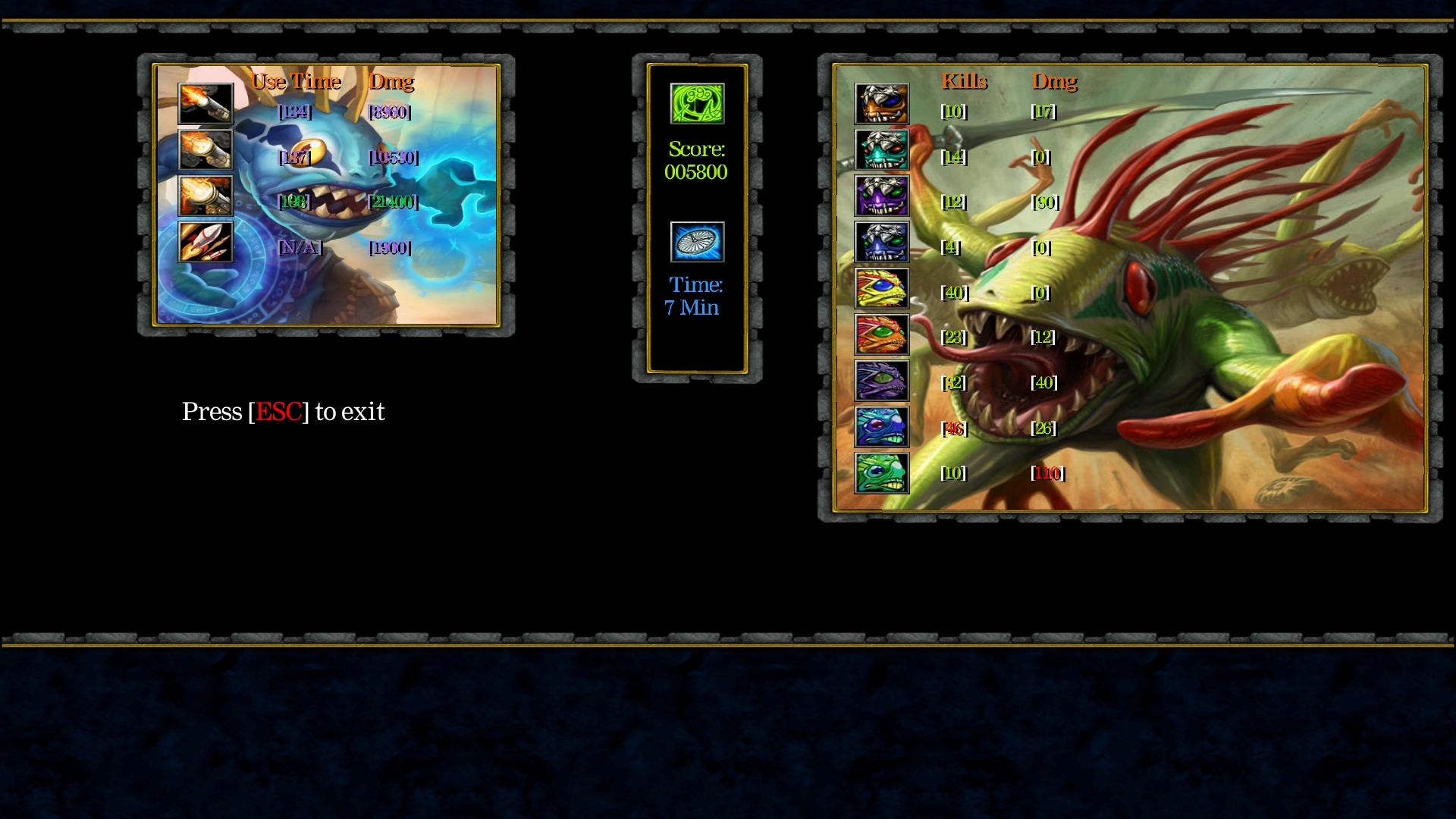Справа отображается количество убитых марлоков (по типам) и сколько каждый из них нанёс урона по игроку.