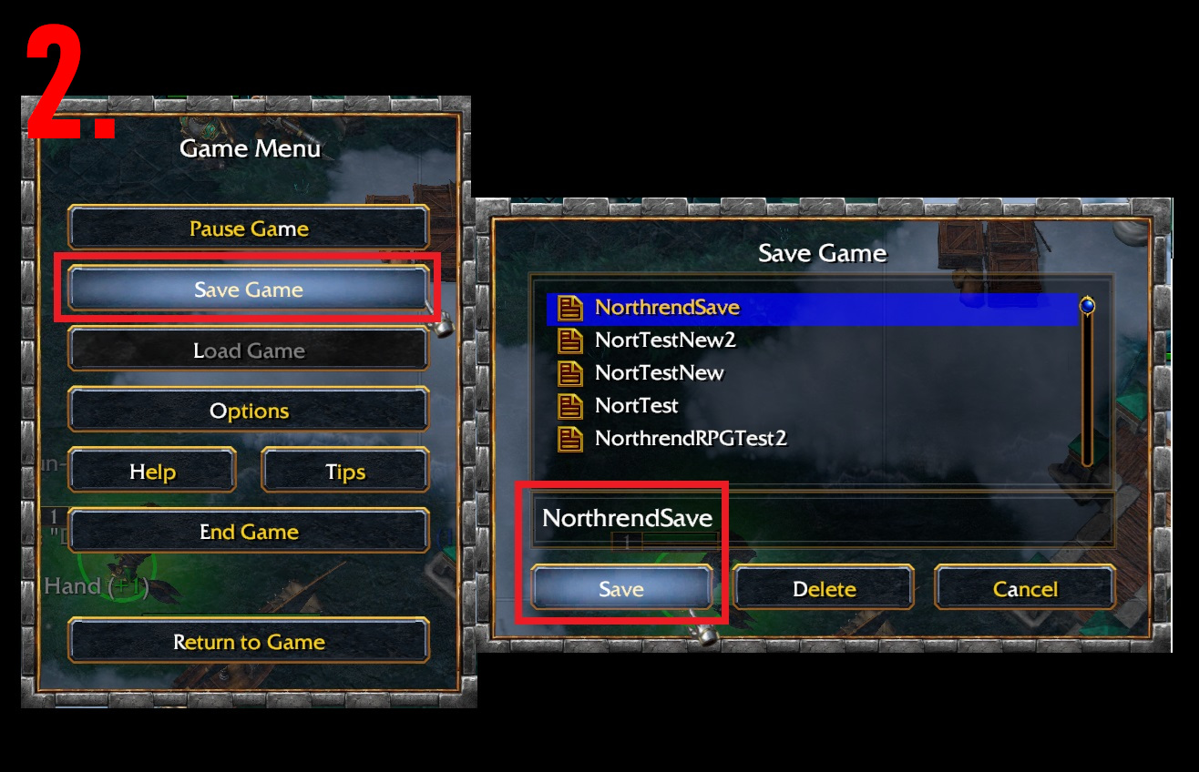 - Choose the "Load Game" button and load the saved game file. The typical file path for the save is "Warcraft III\save\Multiplayer\YourSaveFile.w3z".