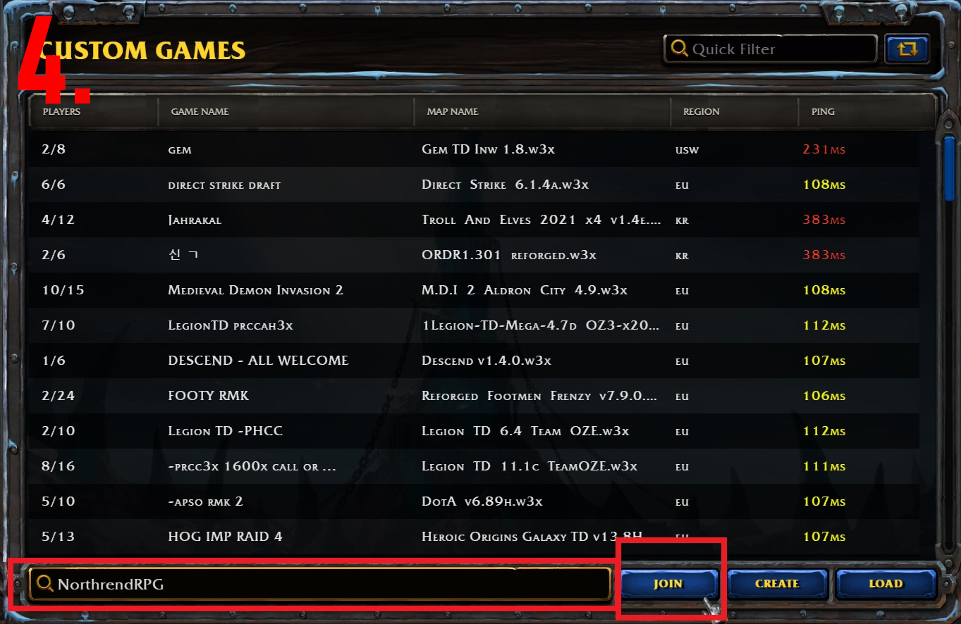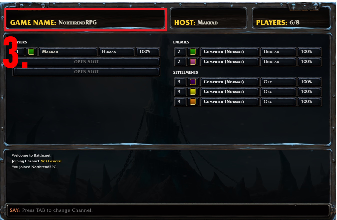 - (2) (If (1) didn't work) All players should download the map file in advance and place it in the "Download" folder at "Warcraft III\Maps\Download".
