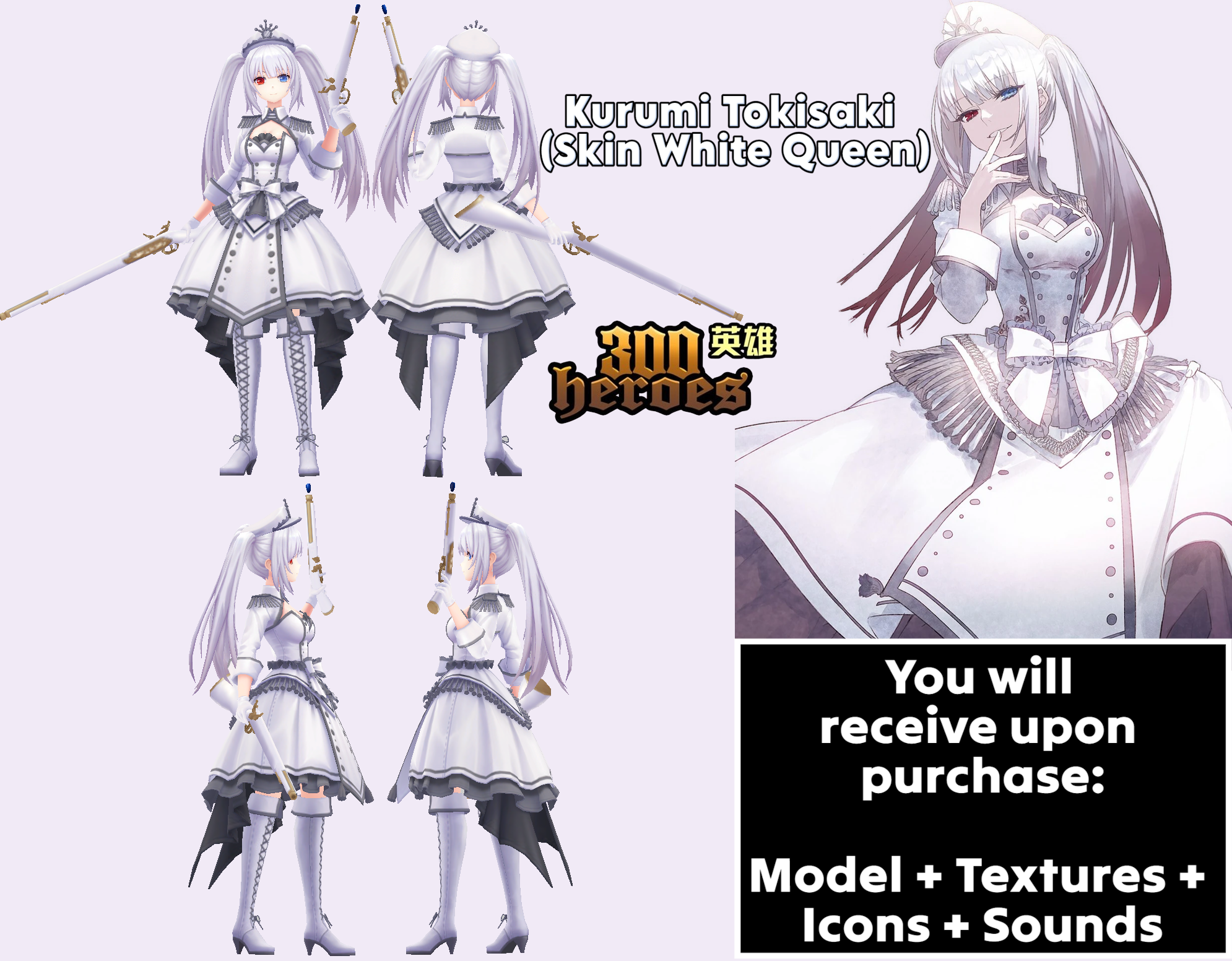 Model of the female character Kurumi Tokisaki (Skin White Queen) from the game 300 Heroes for WarCraft 3.